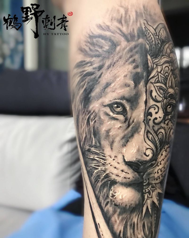 当前位置: 首页 >吉林省四平市纹身店-鹤野刺青纹身图案>狮子纹身图片_腿部几何狮子纹身图案