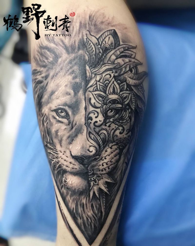 当前位置: 首页 >吉林省四平市纹身店-鹤野刺青纹身图案>狮子纹身图片_腿部几何狮子纹身图案