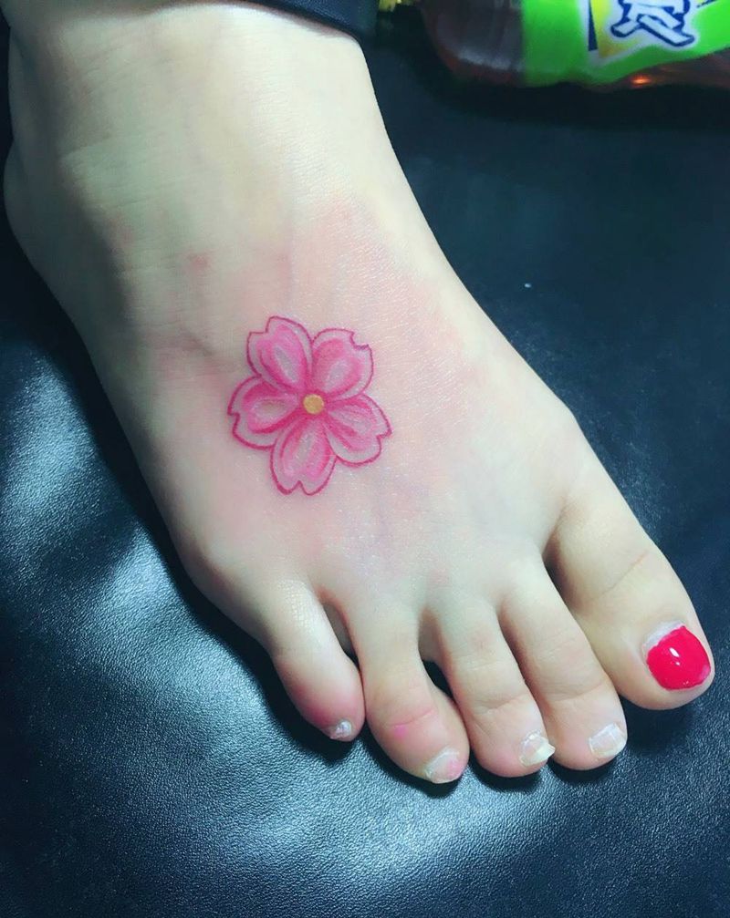 樱花纹身图片_手稿成品插画脚部清新植物纹身图案