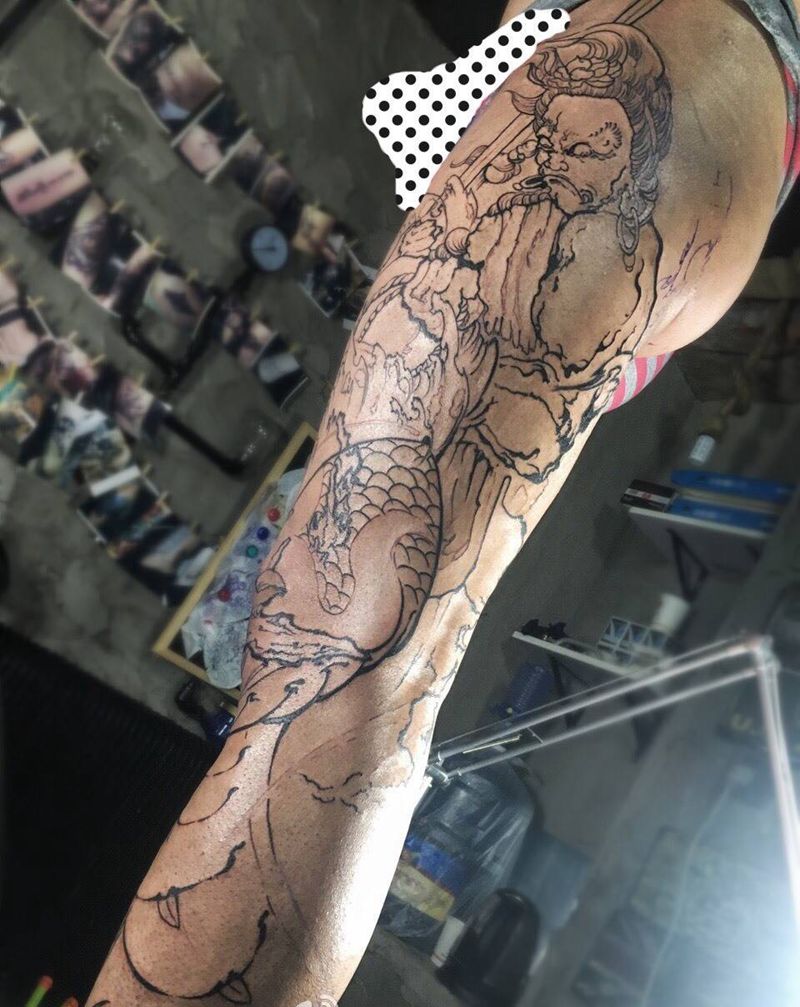 当前位置: 首页 >吉林省通化市纹身店-青松tattoo纹身图案>不动明王腿未完成纹身图片