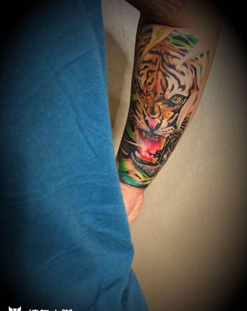 写实小臂虎头纹身图片_插画手臂写实动物纹身图案