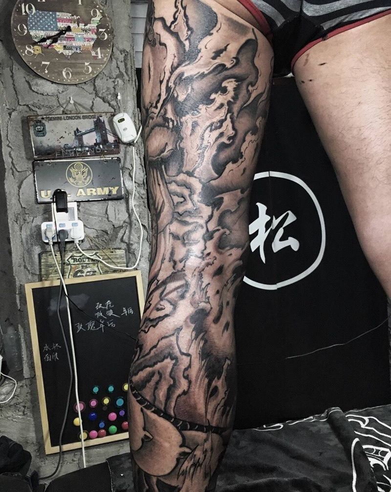 • T网红王老大花腿龙纹身图片_腿部新传统纹身图案