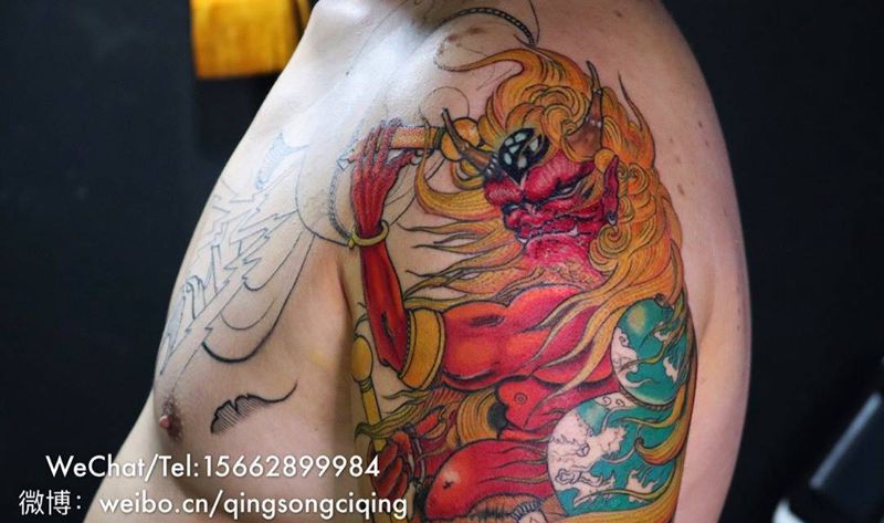 当前位置: 首页 >吉林省通化市纹身店-青松tattoo纹身图案>200斤的彩色半胛纹身图片
