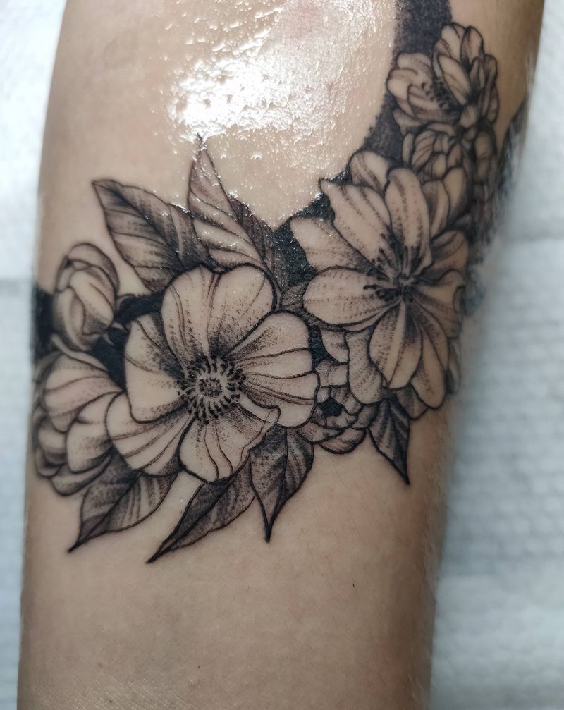 素花纹身图片_手臂点刺素花纹身图案