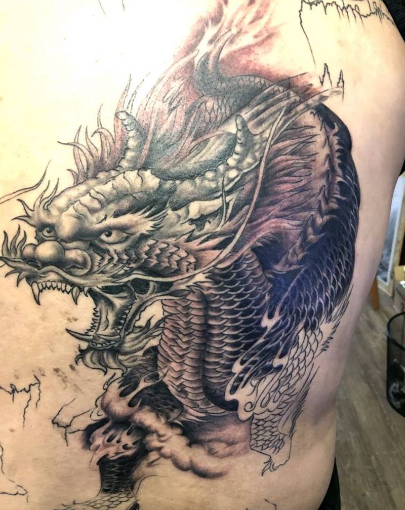 • T云龙九郎纹身图片_背部老传统云龙九郎纹身图案