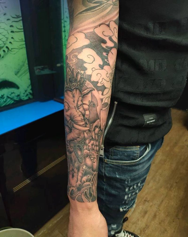 当前位置: 首页 >吉林省通化市纹身店-印.刺青纹身图案>象神纹身图片_手臂新传统纹身图案