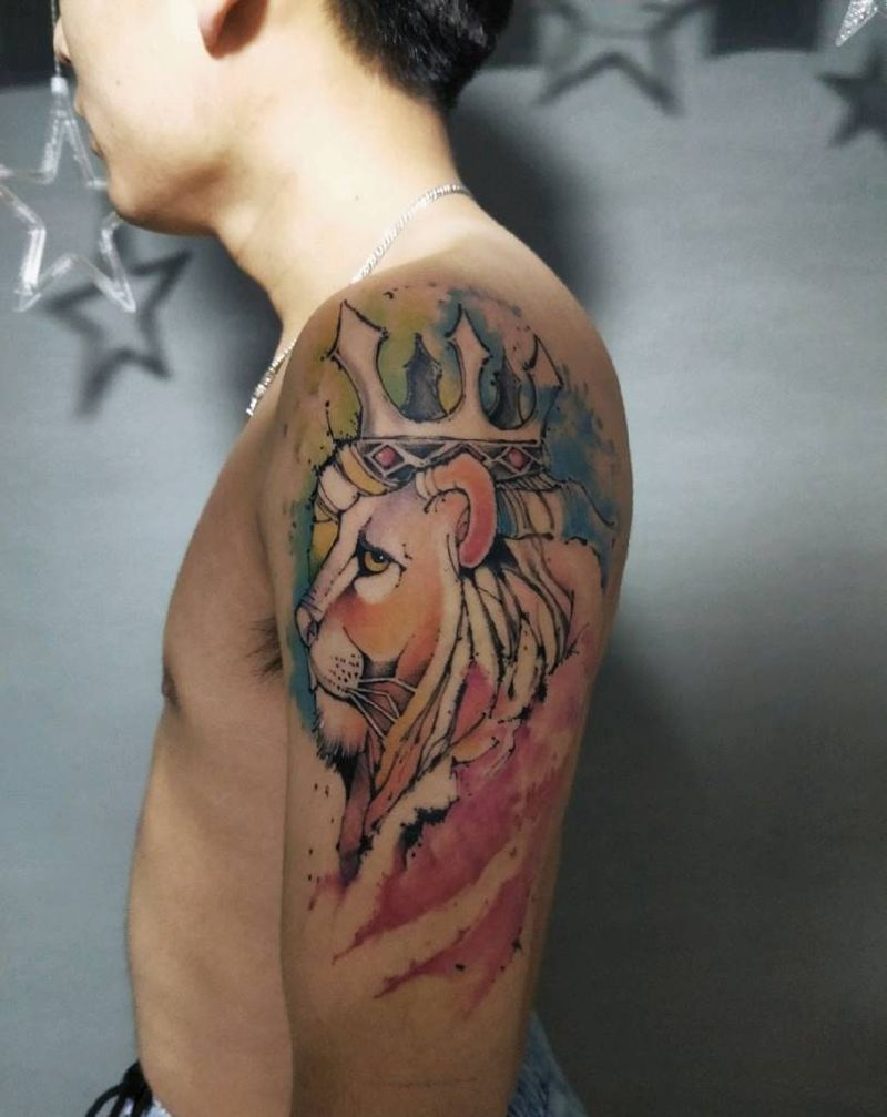当前位置: 首页 >吉林省吉林市纹身店-牟刺青纹身图案>狮子纹身图片_手臂水墨水彩纹身图案