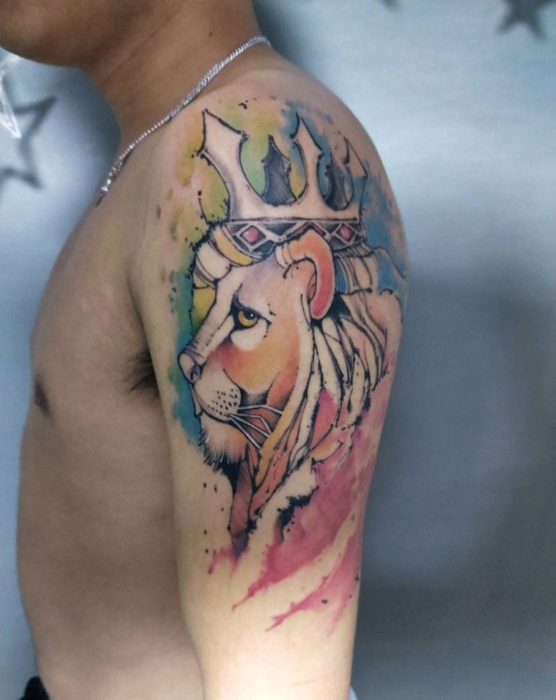 当前位置: 首页 >吉林省吉林市纹身店-牟刺青纹身图案>狮子纹身图片_手臂水墨水彩纹身图案