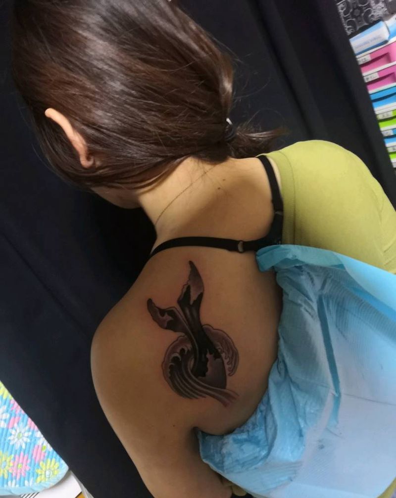 鲸鱼尾纹身图片_肩部背部纹身图案