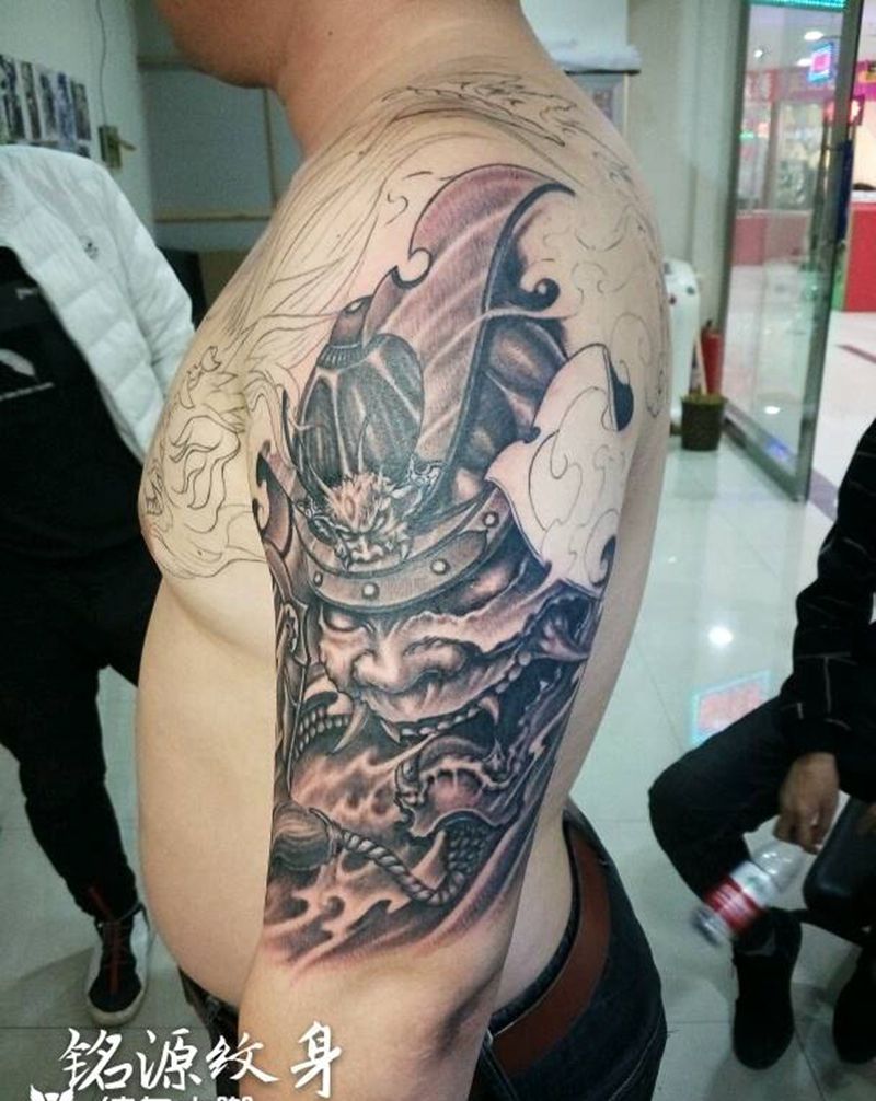 当前位置: 首页 >吉林省松原市纹身店-铭源纹身纹身图案>半甲纹身图片_肩部胸部传统人物未完成纹身图案