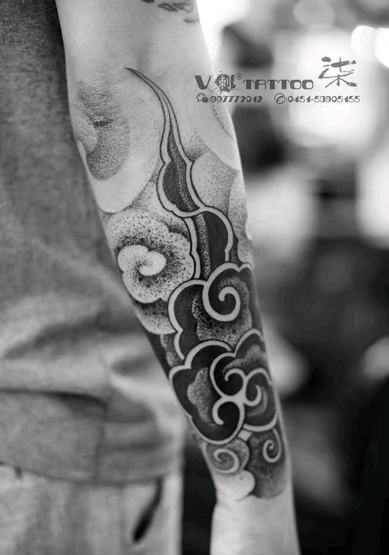 当前位置: 首页 >黑龙江省哈尔滨市纹身店-叁柒社纹身图案>祥云纹身图片_手臂手部传统习俗几何字符图腾原创成品手稿纹身图案