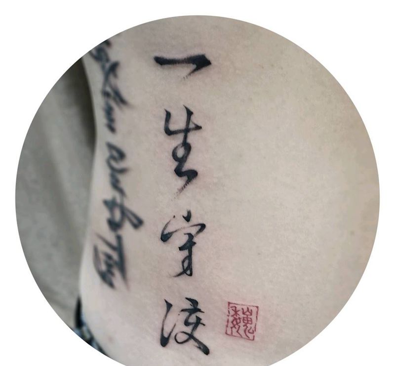修改纹身纹身图片_腹部腰部传统清新国画字符原创水墨遮盖成品纹身图案