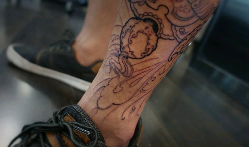 当前位置: 首页 >黑龙江省哈尔滨市纹身店-叁柒社纹身图案>唐狮子小腿纹身图片_腿部传统动物原创黑灰纹身图案