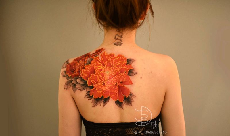 当前位置: 首页 >黑龙江省哈尔滨市纹身店-叁柒社纹身图案>花纹身图片_背部新传统金线牡丹牡丹彩色纹身图案