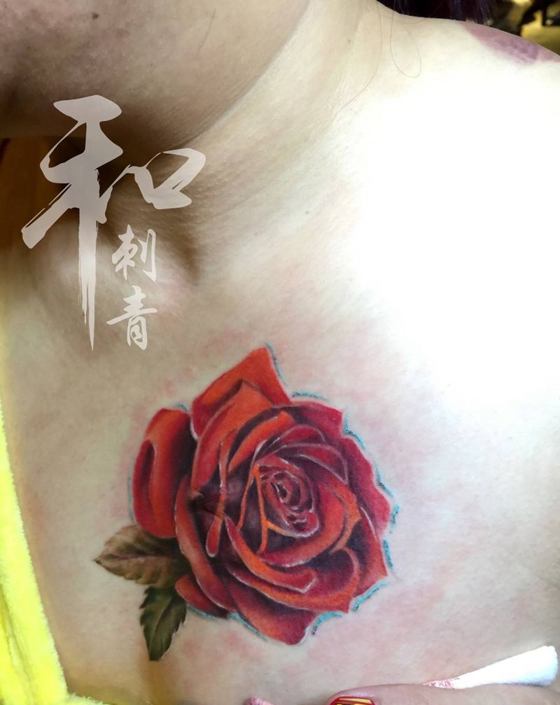 • 女性大花胸纹身_43张霸气漂亮的女性大花胸纹身图案作品