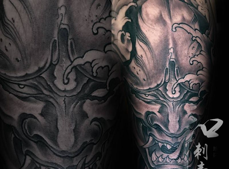 黑灰满背纹身图案