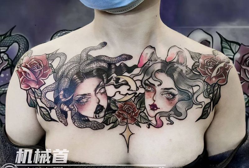 • 女性大花胸纹身_43张霸气漂亮的女性大花胸纹身图案作品