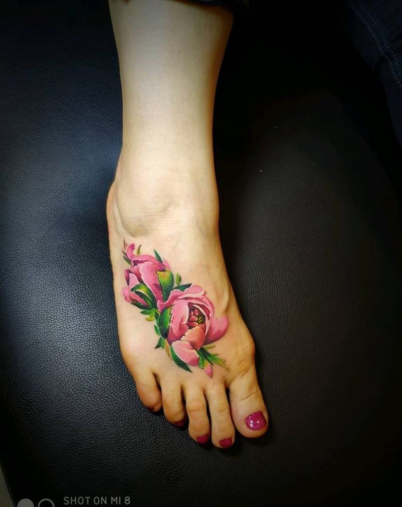 水彩花纹身图片_脚部水彩纹身图案