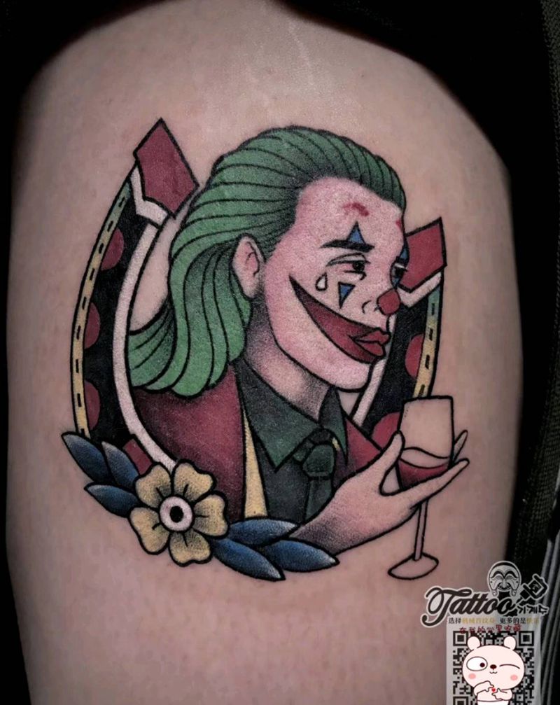小丑纹身图片_腿部Old SchoolNew School小丑原创彩色纹身图案