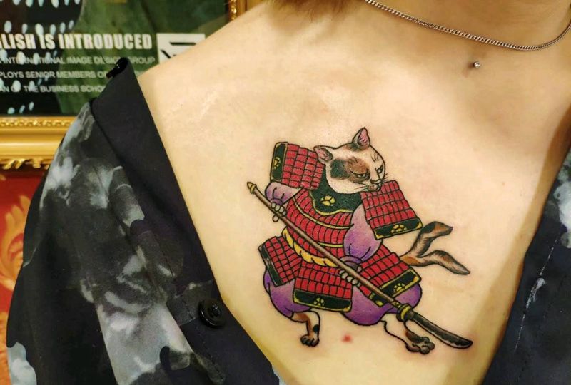 当前位置: 首页 >黑龙江省哈尔滨市纹身店-华青社中俄国际纹身纹身图案>武士猫纹身图片_胸部老传统纹身图案