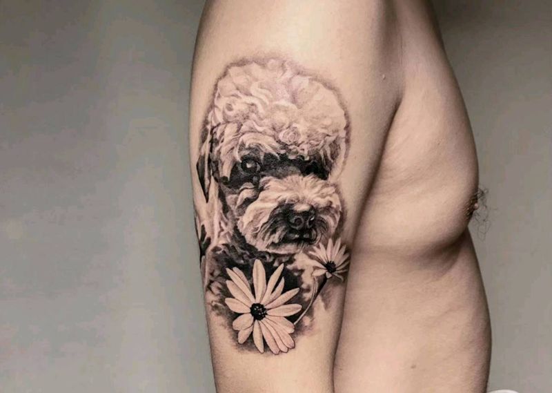 爱宠纹身图片_手臂欧美写实宠物狗纹身图案