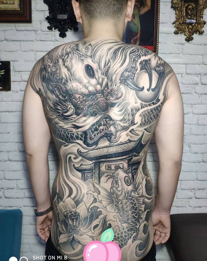 鱼越龍門纹身图片_背部新传统纹身图案
