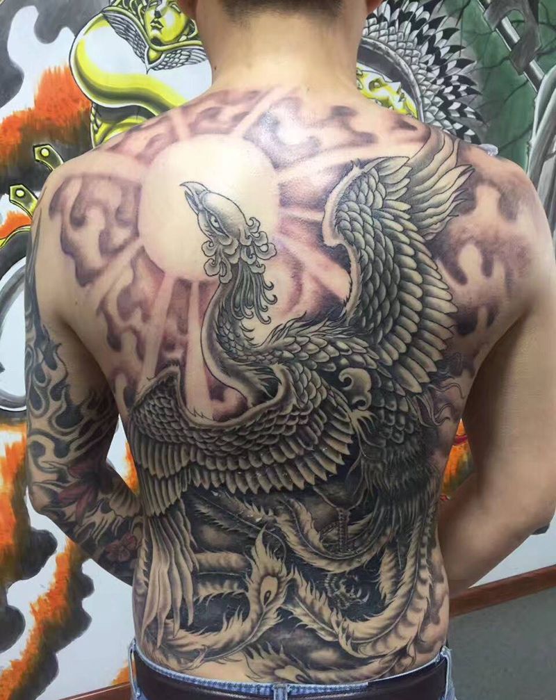 当前位置: 首页 >吉林省延边朝鲜族自治州纹身店-匠心刺青纹身图案>满背凤凰纹身图片