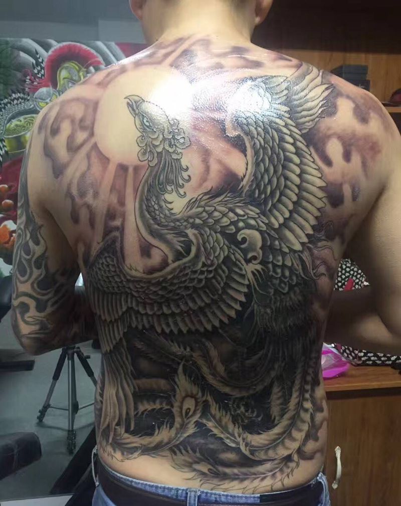 当前位置: 首页 >吉林省延边朝鲜族自治州纹身店-匠心刺青纹身图案>满背凤凰纹身图片