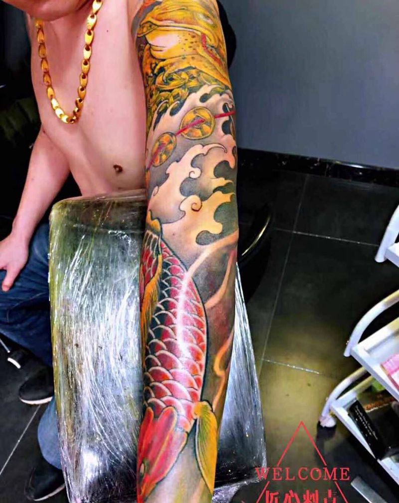 当前位置: 首页 >吉林省延边朝鲜族自治州纹身店-匠心刺青纹身图案>原创金蟾加鲤鱼上色纹身图片_手臂新传统纹身图案