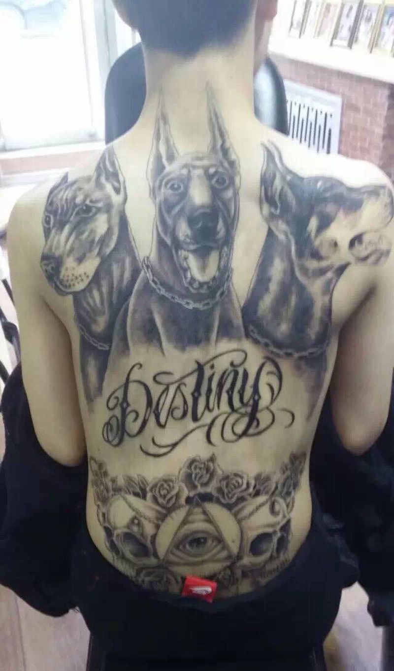 当前位置: 首页 >吉林省延边朝鲜族自治州纹身店-匠心刺青纹身图案>爱犬纹身图片_成品背部写实传统清新欧美动物原创纹身图案