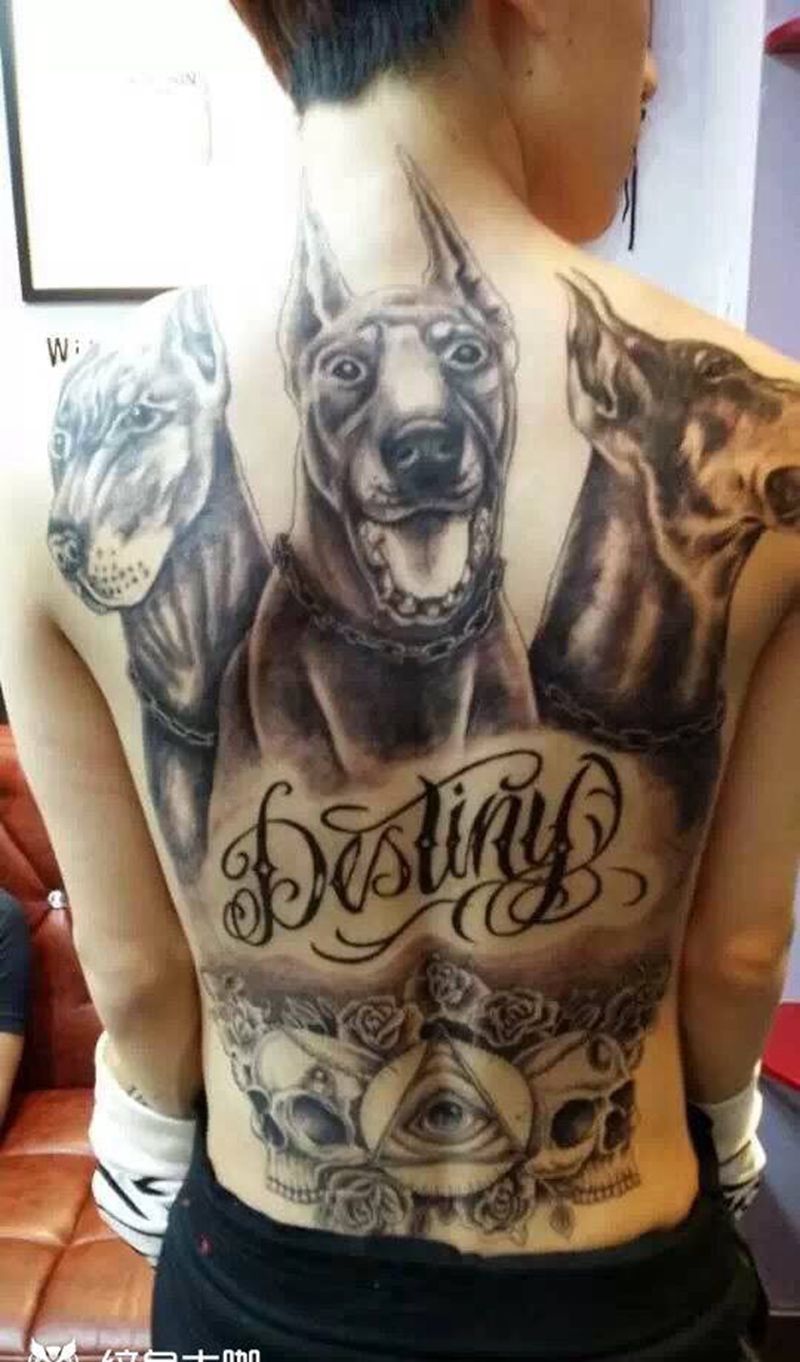 爱犬纹身图片_成品背部写实传统清新欧美动物原创纹身图案