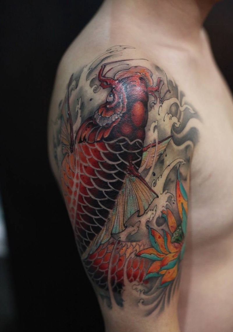 当前位置: 首页 >黑龙江省哈尔滨市纹身店-V刺tattoo纹身图案>迎骄阳而不惧 濯清涟而不妖 传统风格 / 大臂纹身图片