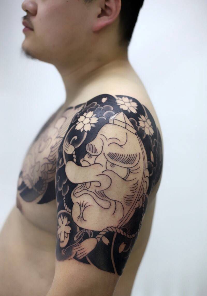 • 纹身吧推荐的披肩图腾半胛纹身图案作品展示
