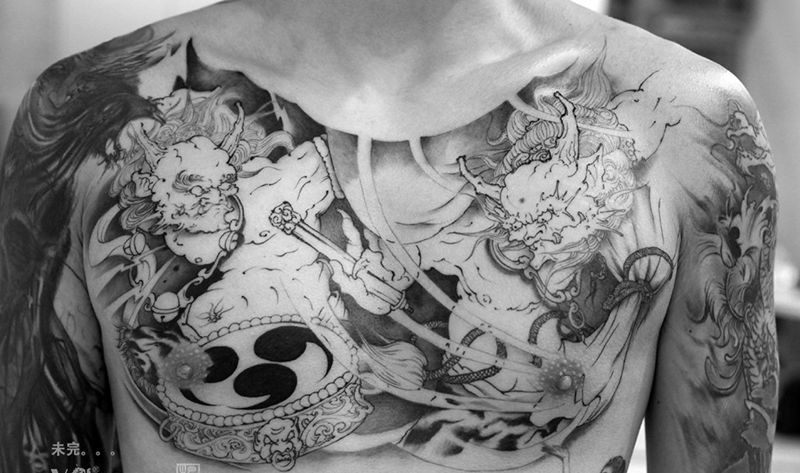 • 黑灰满背纹身图案