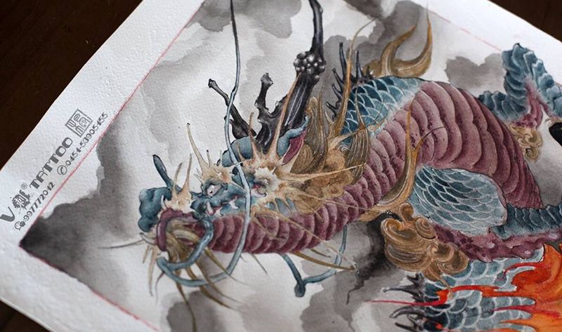 • T网红王老大花腿龙纹身图片_腿部新传统纹身图案