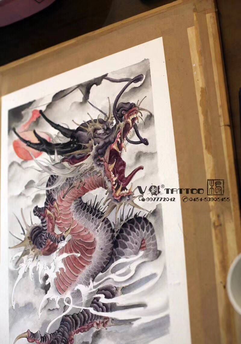 • T网红王老大花腿龙纹身图片_腿部新传统纹身图案