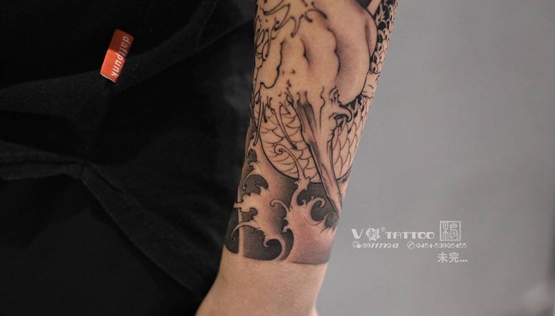 当前位置: 首页 >黑龙江省哈尔滨市纹身店-V刺tattoo纹身图案>风神吸龙纹身图片_手臂手部老传统新传统风神雷神花臂龙纹身图案