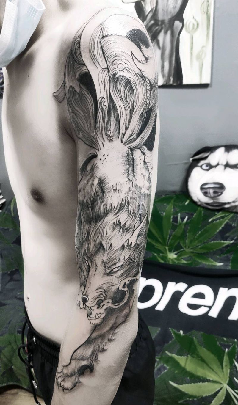 当前位置: 首页 >黑龙江省哈尔滨市纹身店-金艺堂纹身工作室纹身图案>狐狸纹身图片_手臂纹身图案