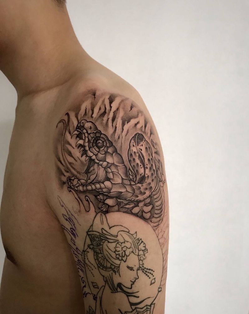 艺妓修改添加纹身图片_艺妓蛇修改哈尔滨弥刺传统手臂纹身图案