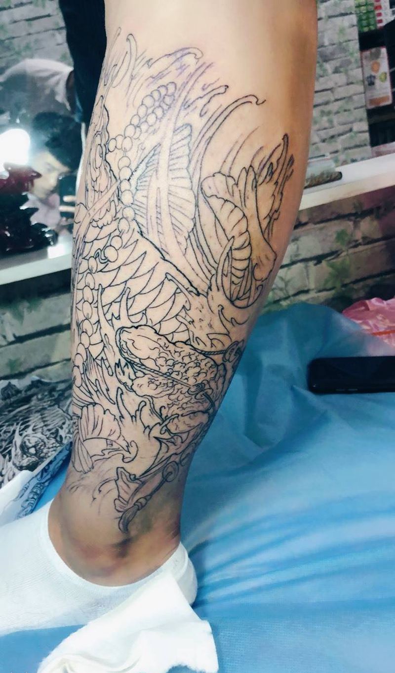 • T网红王老大花腿龙纹身图片_腿部新传统纹身图案