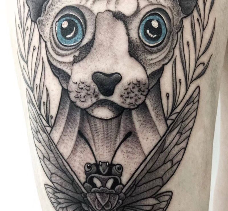 司芬克斯纹身图片_腿部New School点刺纹身图案