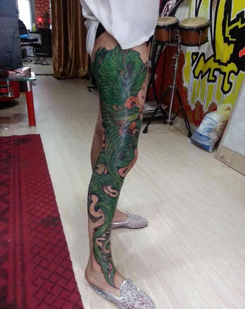 • T网红王老大花腿龙纹身图片_腿部新传统纹身图案