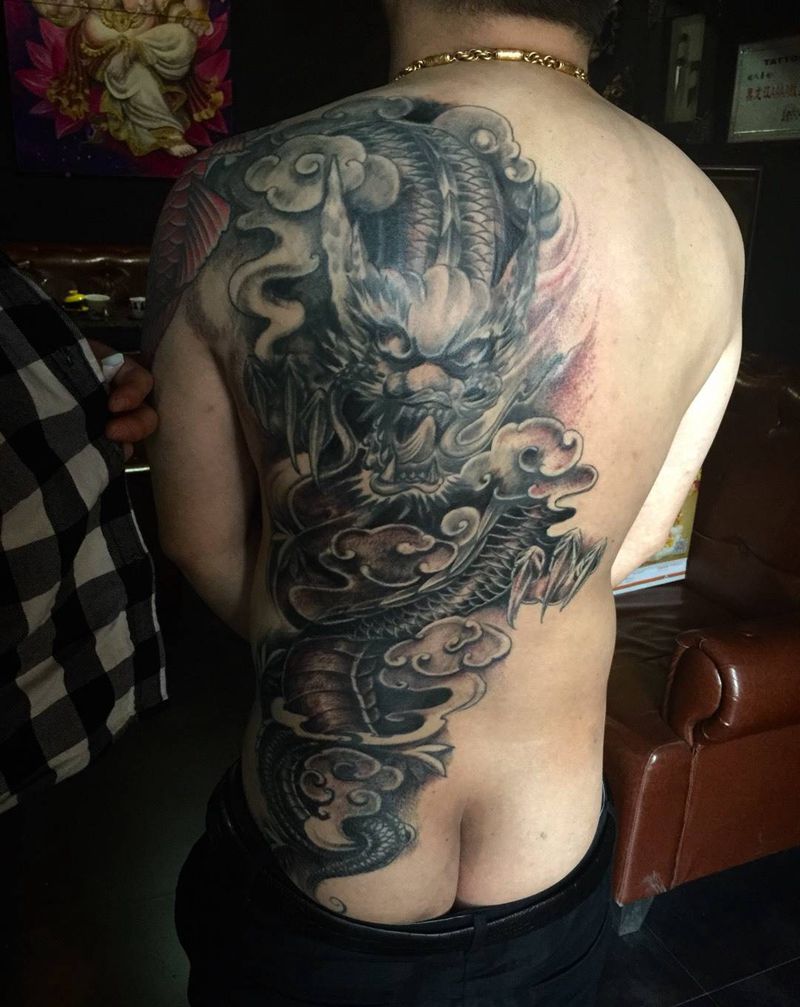 当前位置: 首页 >黑龙江省哈尔滨市纹身店-文人墨刻文身艺术俱乐部纹身图案>半背云龙纹身图片