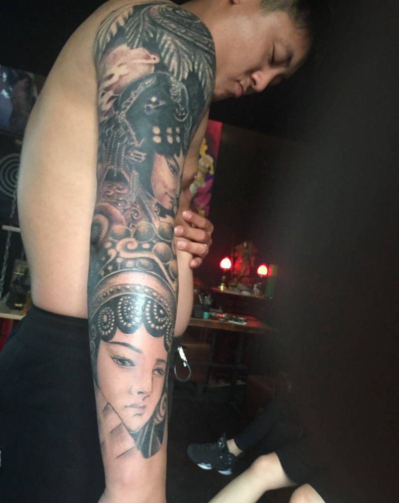 当前位置: 首页 >黑龙江省哈尔滨市纹身店-文人墨刻文身艺术俱乐部纹身图案>中国元素花臂纹身图片