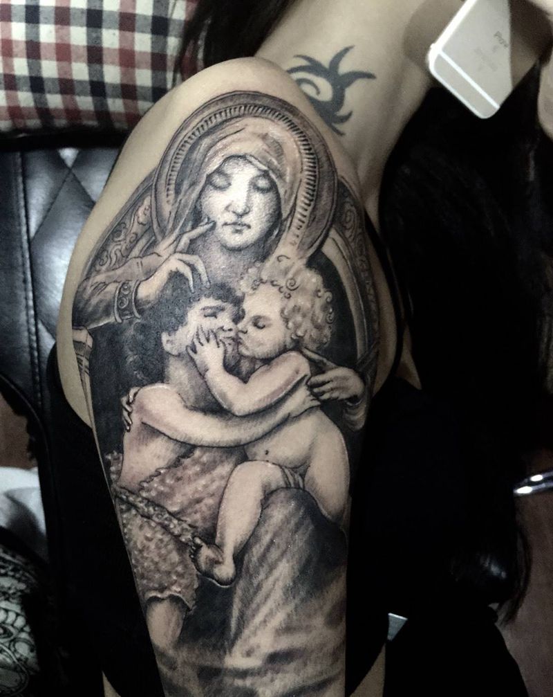 当前位置: 首页 >黑龙江省哈尔滨市纹身店-文人墨刻文身艺术俱乐部纹身图案>圣母玛利亚纹身图片