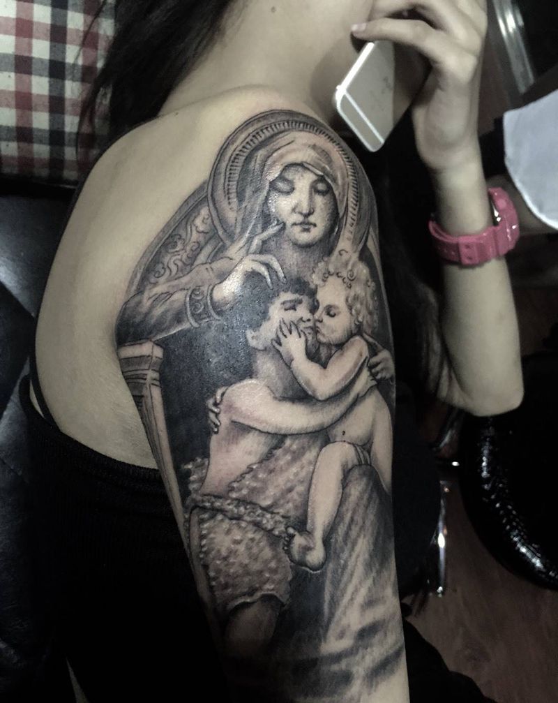 当前位置: 首页 >黑龙江省哈尔滨市纹身店-文人墨刻文身艺术俱乐部纹身图案>圣母玛利亚纹身图片