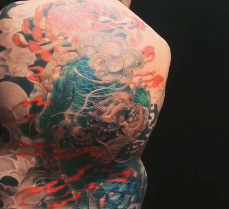 黑灰满背纹身图案