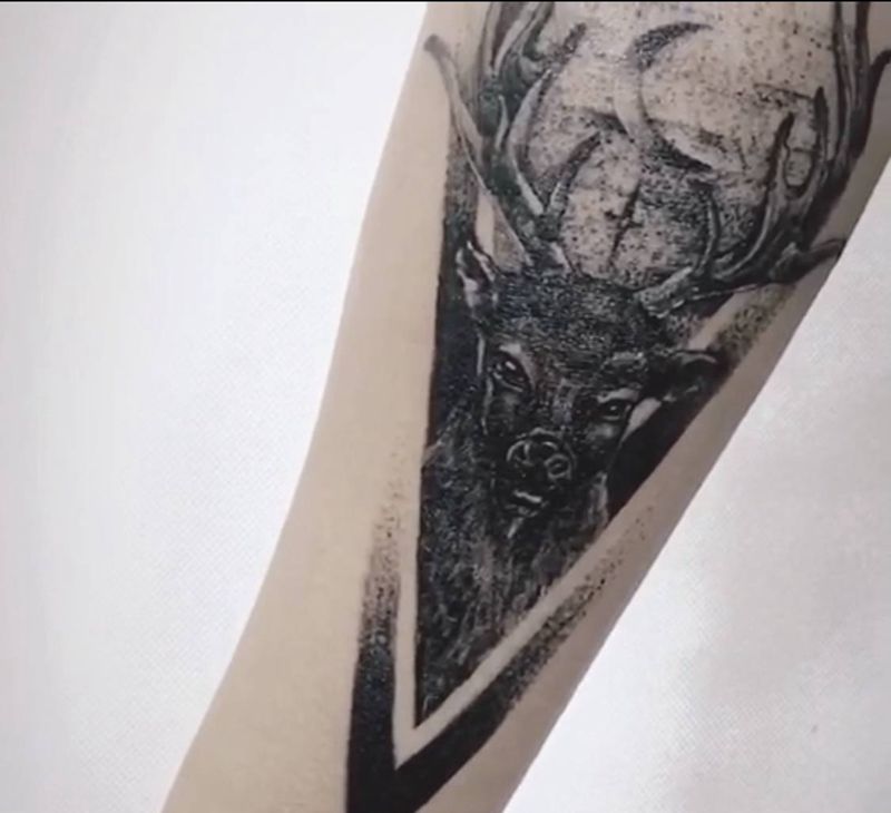 鹿纹身图片_手臂手部点刺欧美写实纹身图案