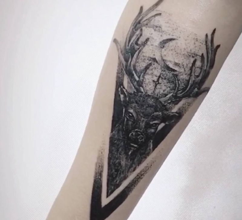 鹿纹身图片_手臂手部点刺欧美写实纹身图案