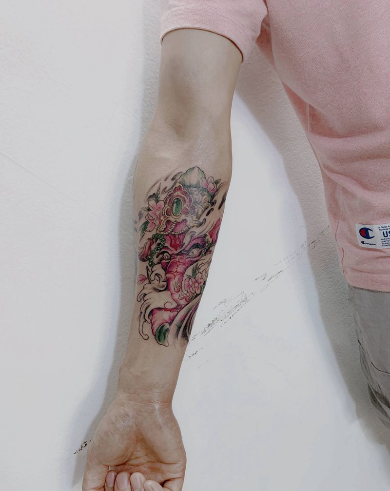 当前位置: 首页 >黑龙江省哈尔滨市纹身店-Z tattoo哲刺青纹身图案>象神彩色纹身图片_手臂新传统纹身图案